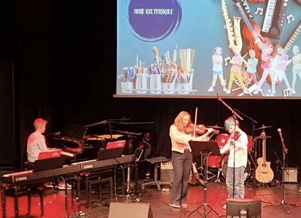 Kulturskolens fjerde og siste juleavslutning var konsert og kunstutstilling i Aure arena. Våre elever tok publikum med på en variert og kreativ opplevelse sammen med kunstlærer Åse Ulfsnes og musikklærerne Hilde Bergfald, Liddvar Hannasvik og Sigrid Britt Golmen.
